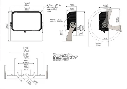 Construction robuste : Ce projecteur est conçu pour résister à des conditions difficiles avec un boîtier résistant à la corrosion et une protection étanche élevée, souvent conforme aux normes IP67.