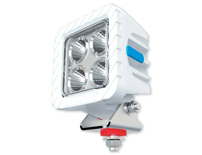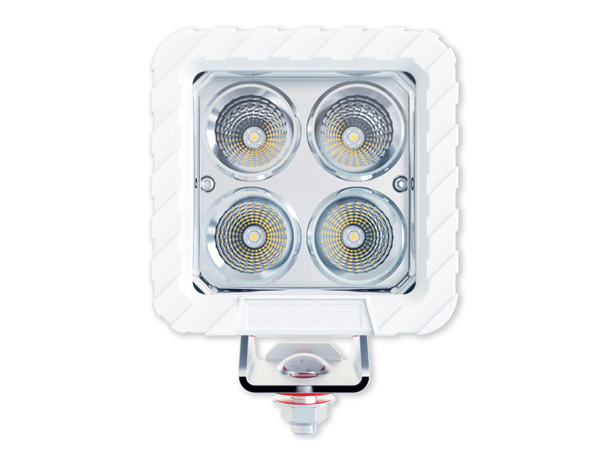 Projecteur LED blanc offrant une puissance lumineuse de 4100 lumens avec un angle de faisceau de 60°. Il est livré avec un câble de 0,5 mètre et une gaine thermorétractable pour assurer une meilleure étanchéité. Protection IP68 et support en acier inoxydable 316L. Compatible avec les systèmes VHF/AIS pour les applications marines.