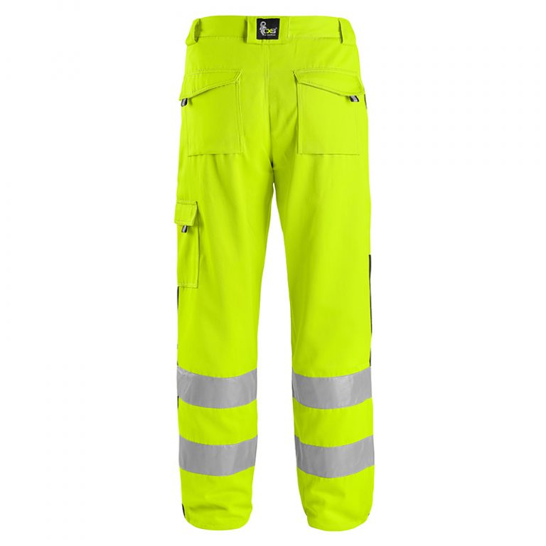 - Haute visibilité certifiée : Le pantalon est fabriqué dans un tissu fluorescent et équipé de bandes réfléchissantes homologuées, garantissant une visibilité accrue même dans des conditions de faible luminosité. Conforme aux normes de sécurité en vigueur (EN ISO 20471), il assure que vous soyez bien repérable de jour comme de nuit, réduisant ainsi les risques d’accidents.